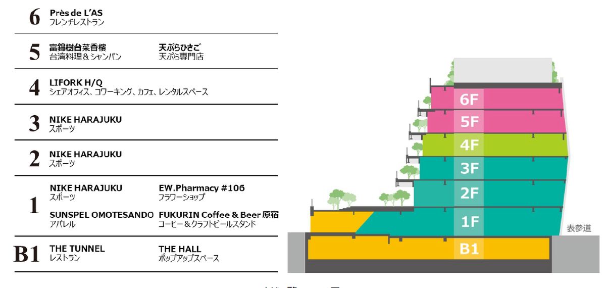 ・6階には表参道の欅並木を超える高さにテラスを設置