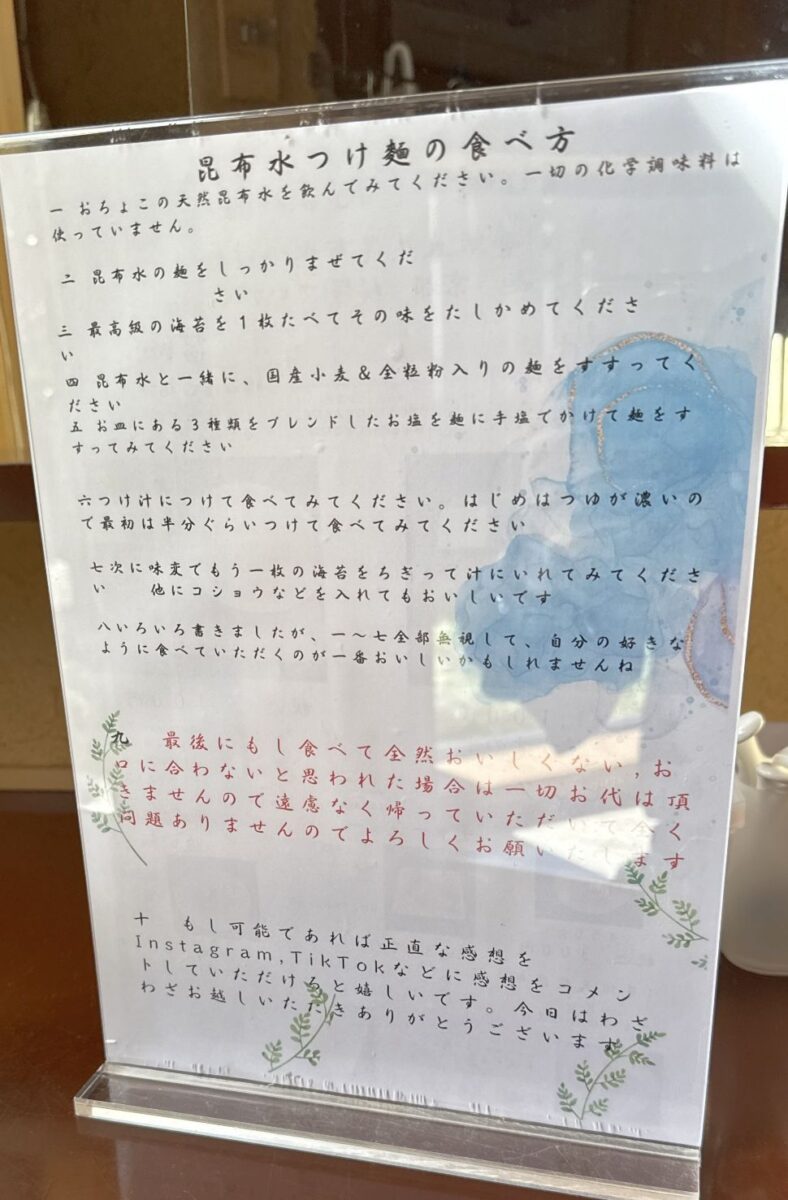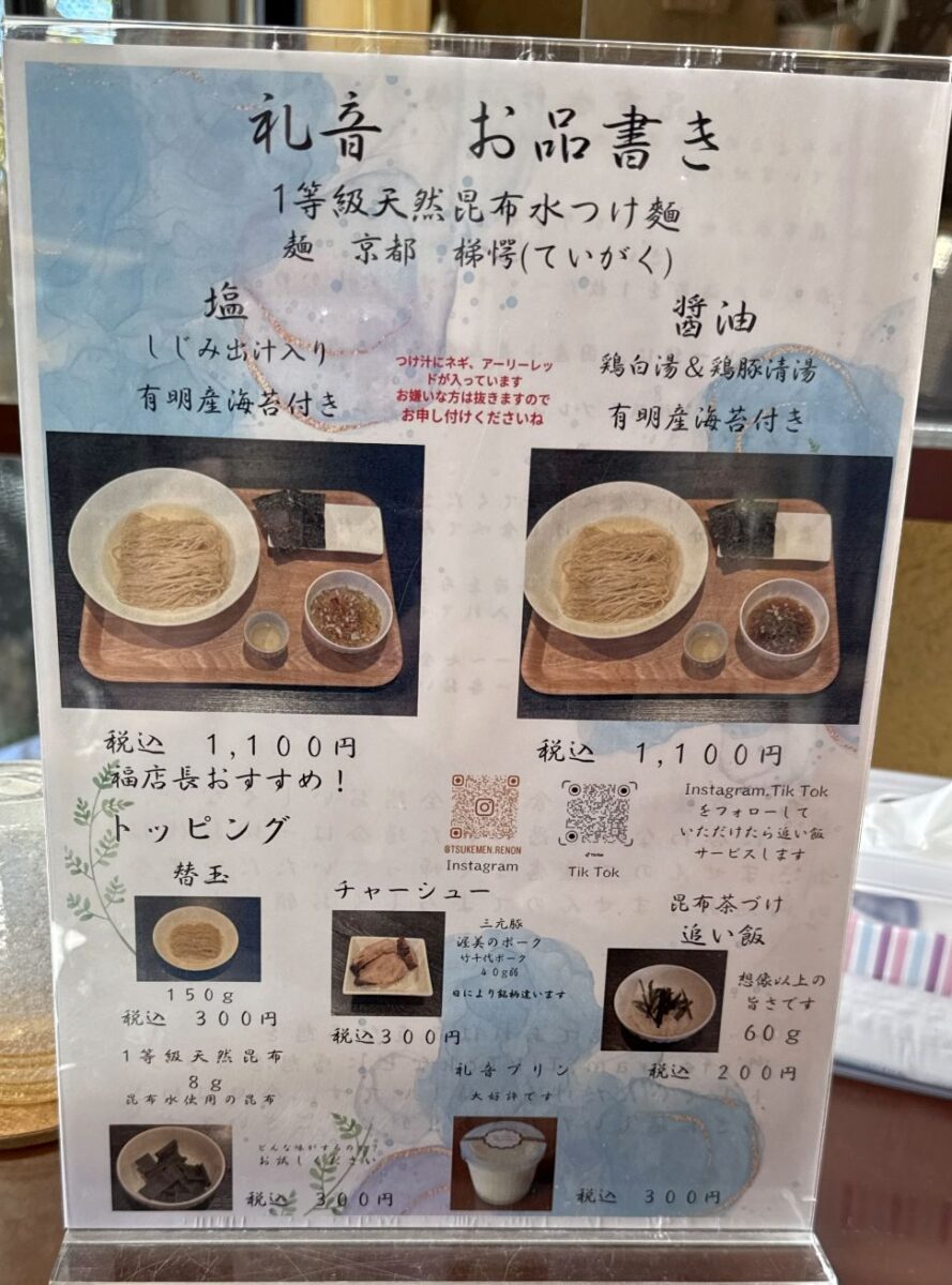 ・礼音(れのん,岡崎市)昆布つけ麺塩とチャーシュー。