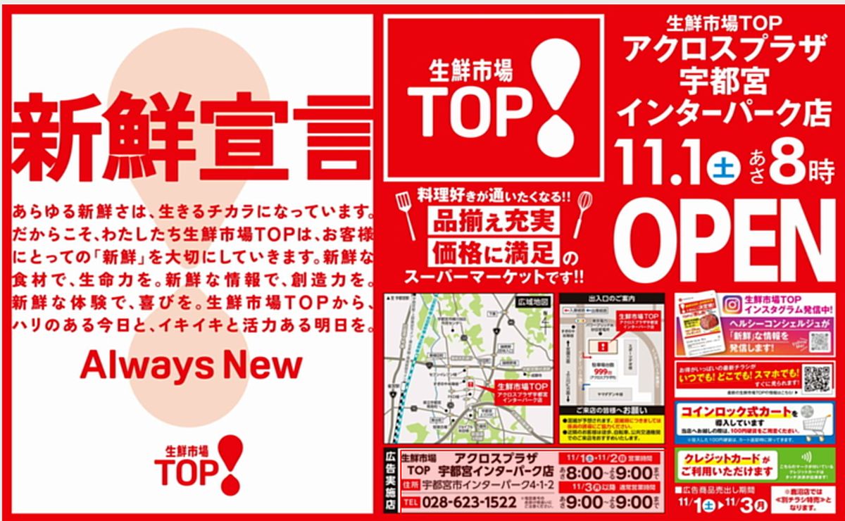 ・11/1生鮮市場TOPアクロスプラザ宇都宮インターパーク店(栃木県)