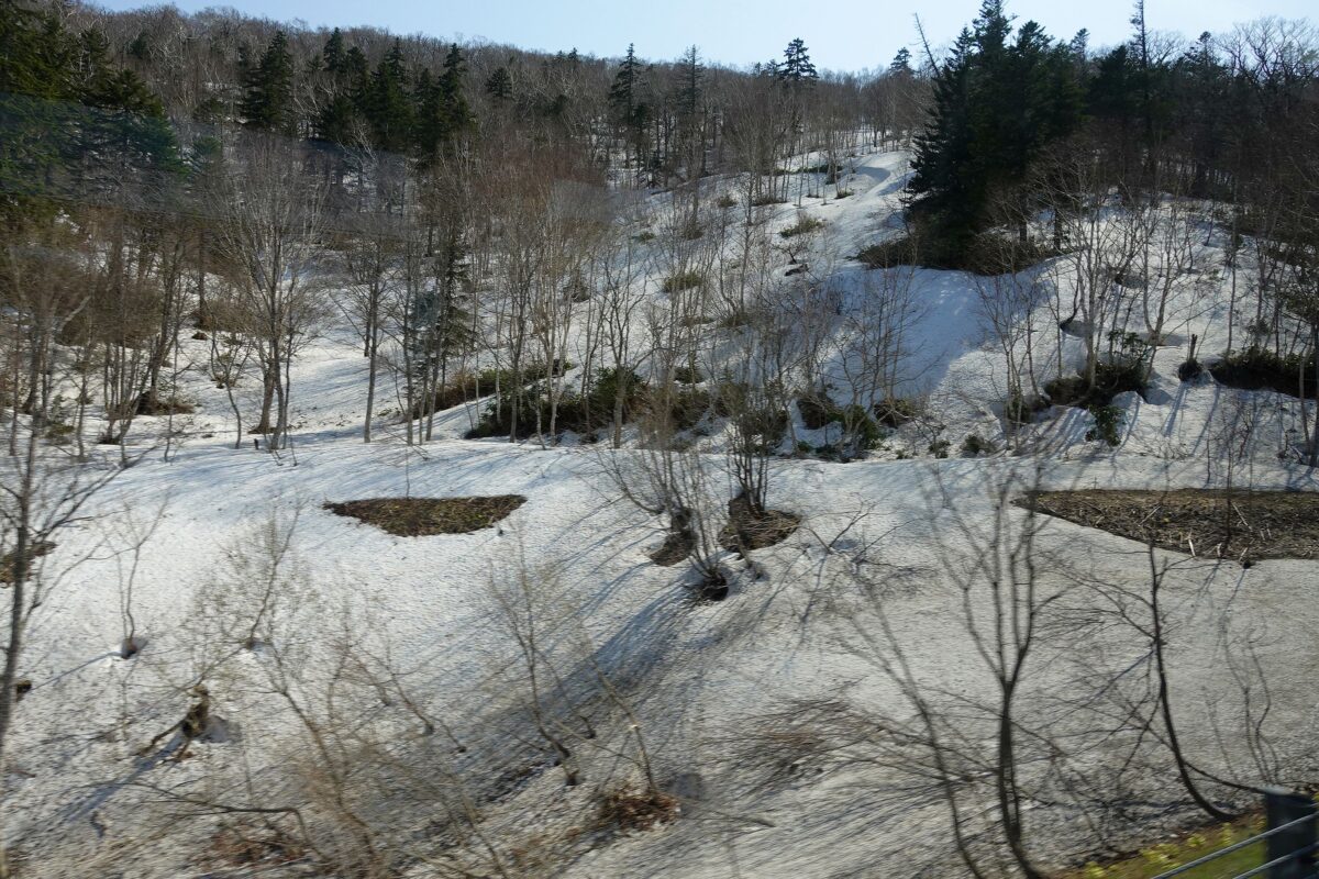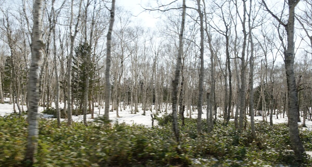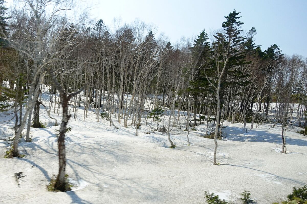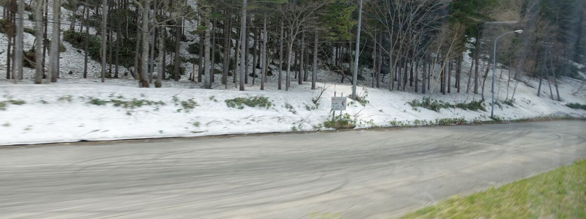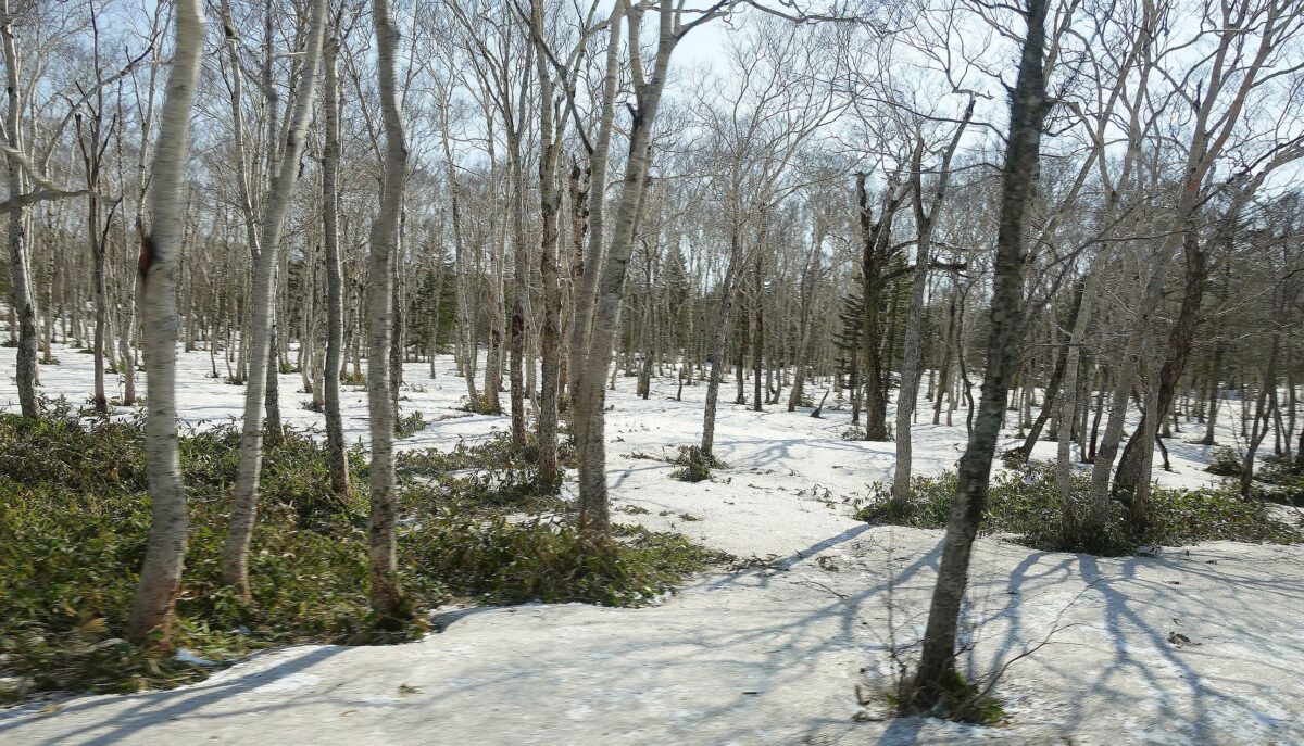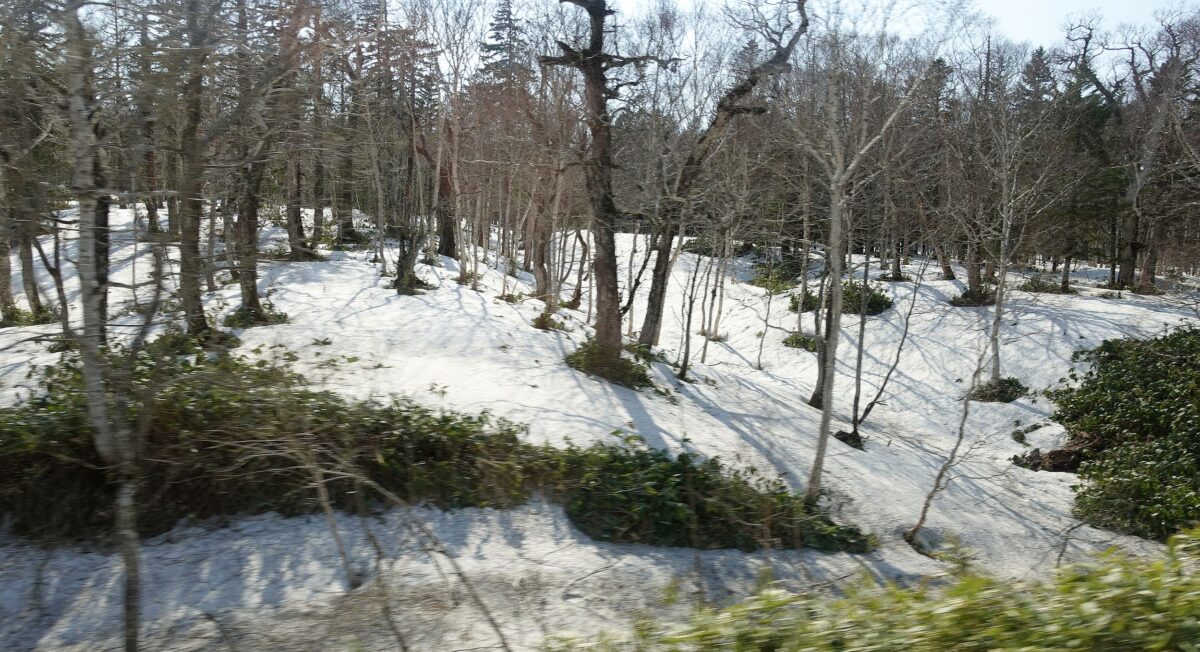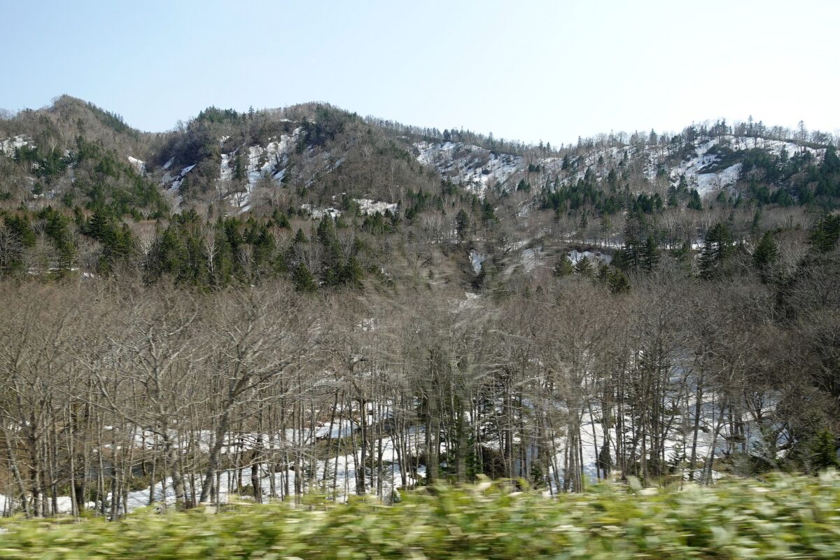 雪の残る根北峠(国道244号線)を越えて斜里町へ