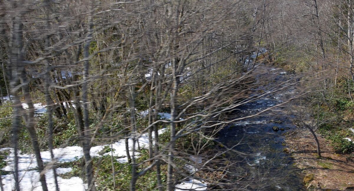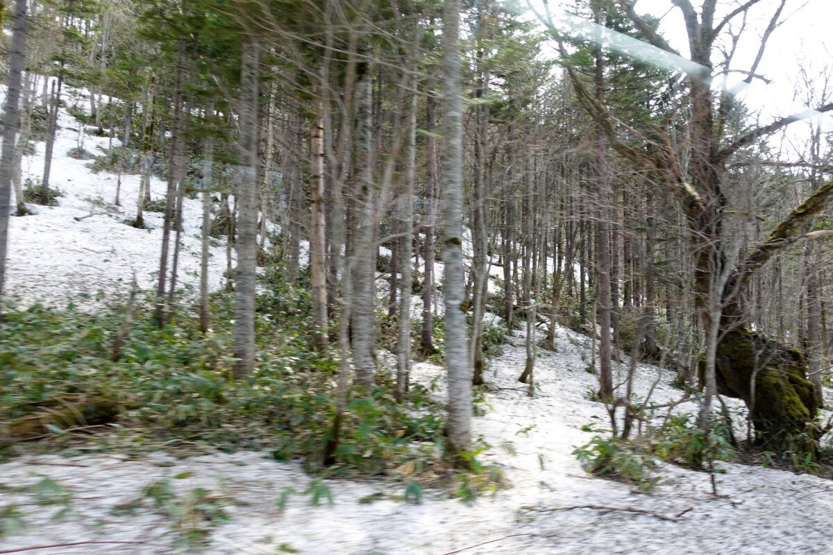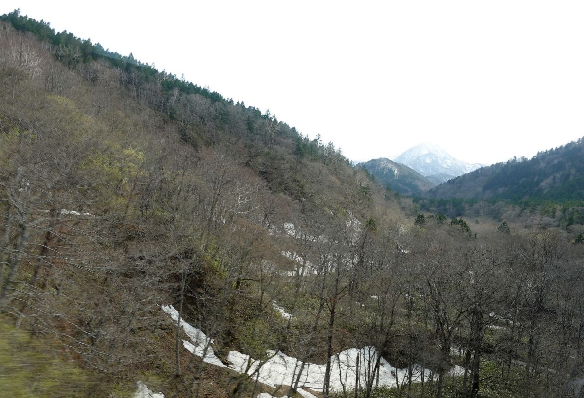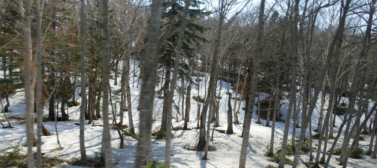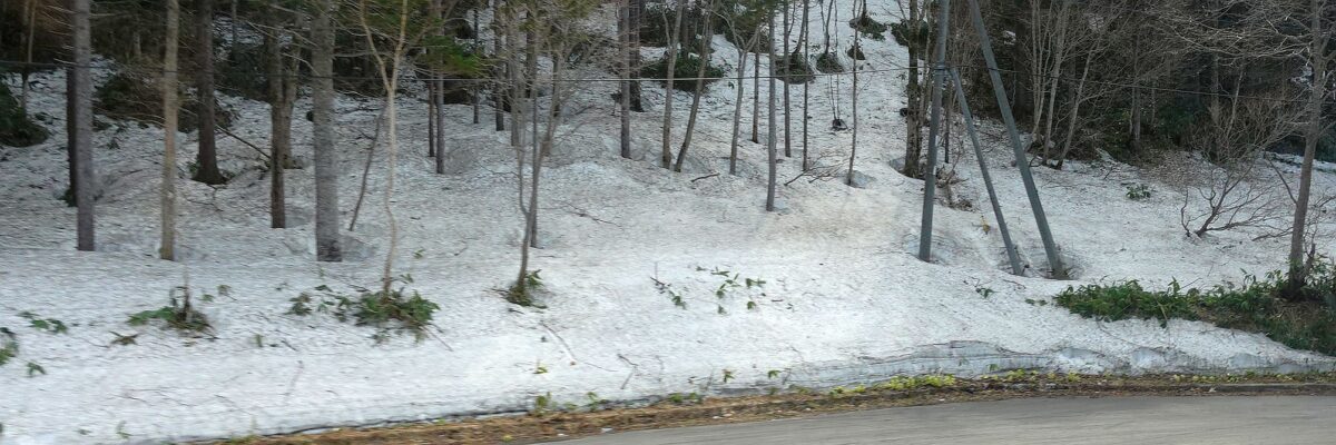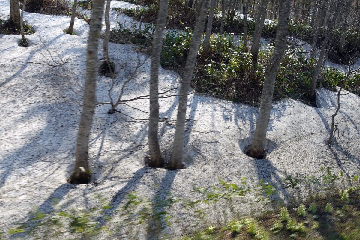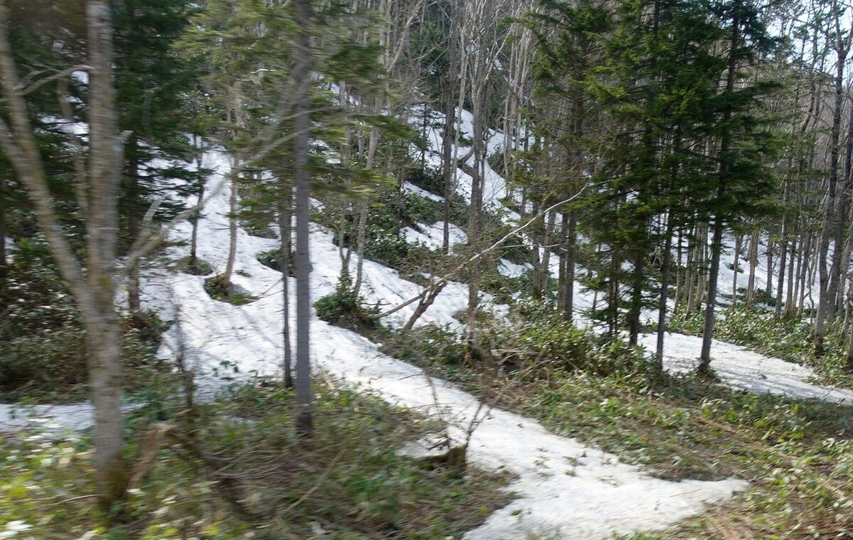 雪の残る根北峠(国道244号線)を越えて斜里町へ