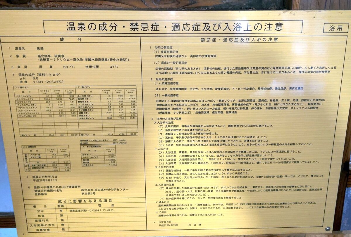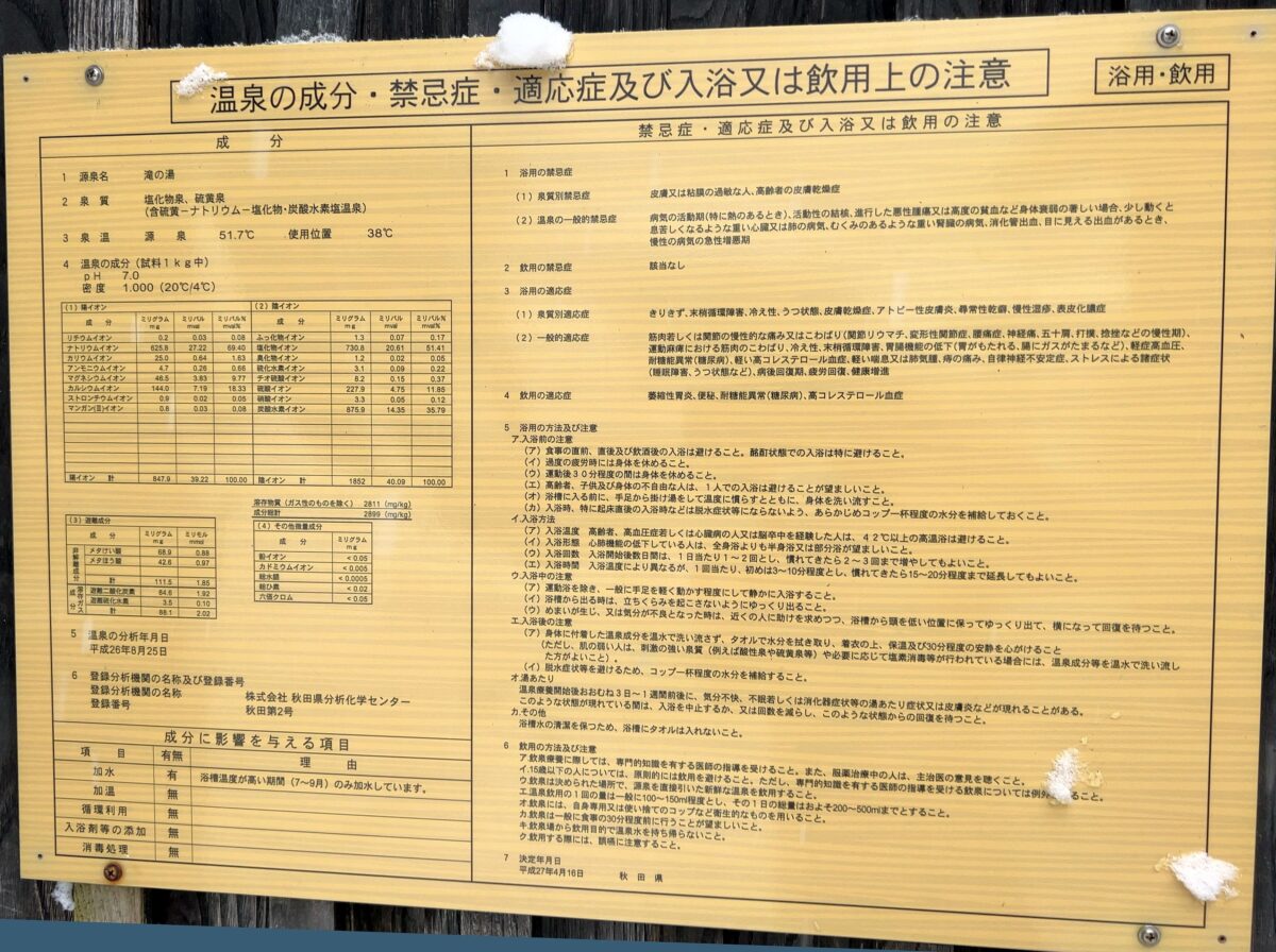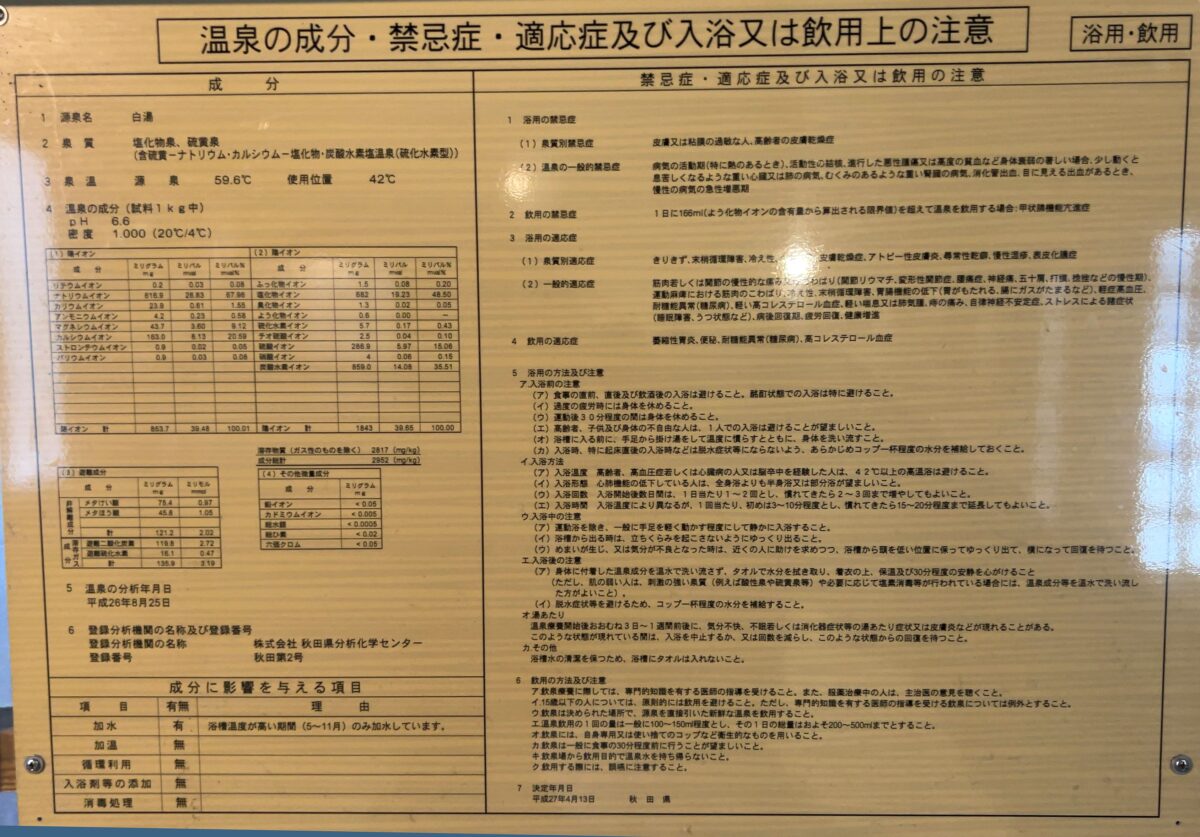 温泉分析書 黒湯・白湯・滝の湯・中の湯