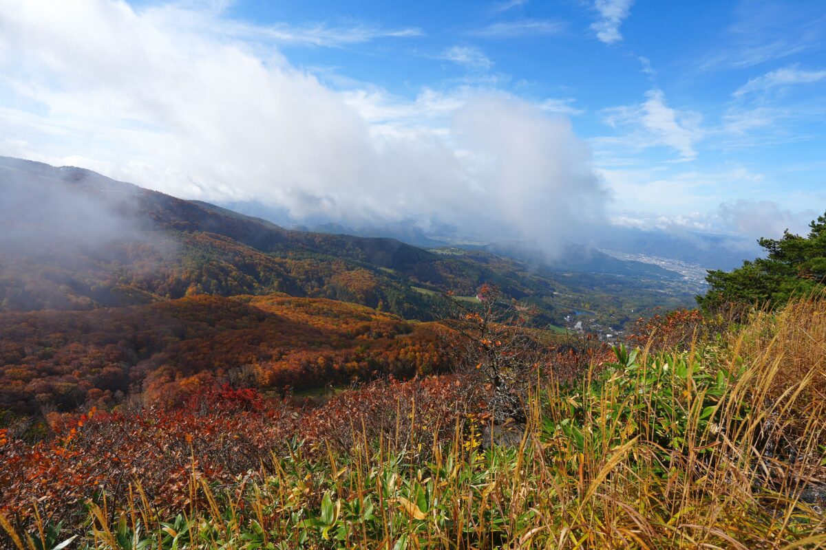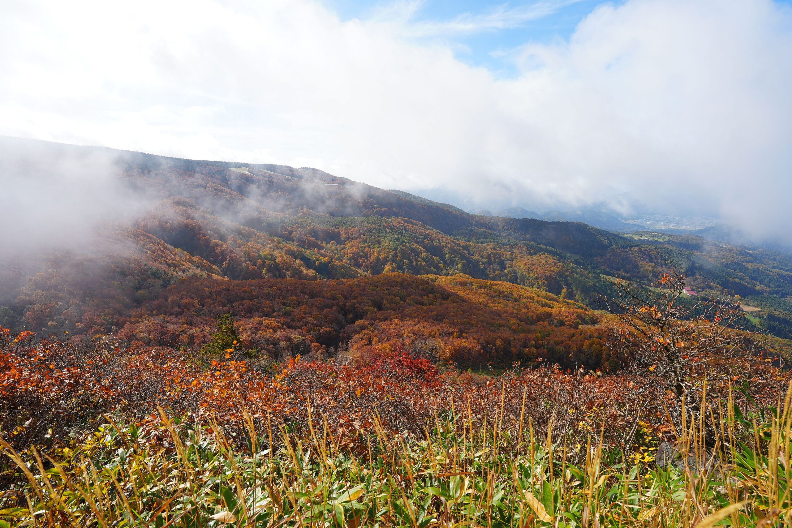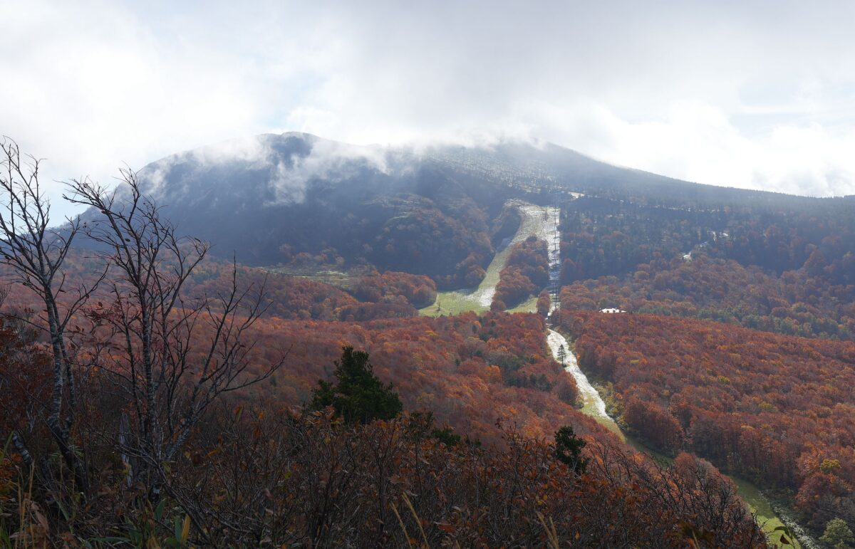・蔵王紅葉と冠雪,鳥兜山頂,