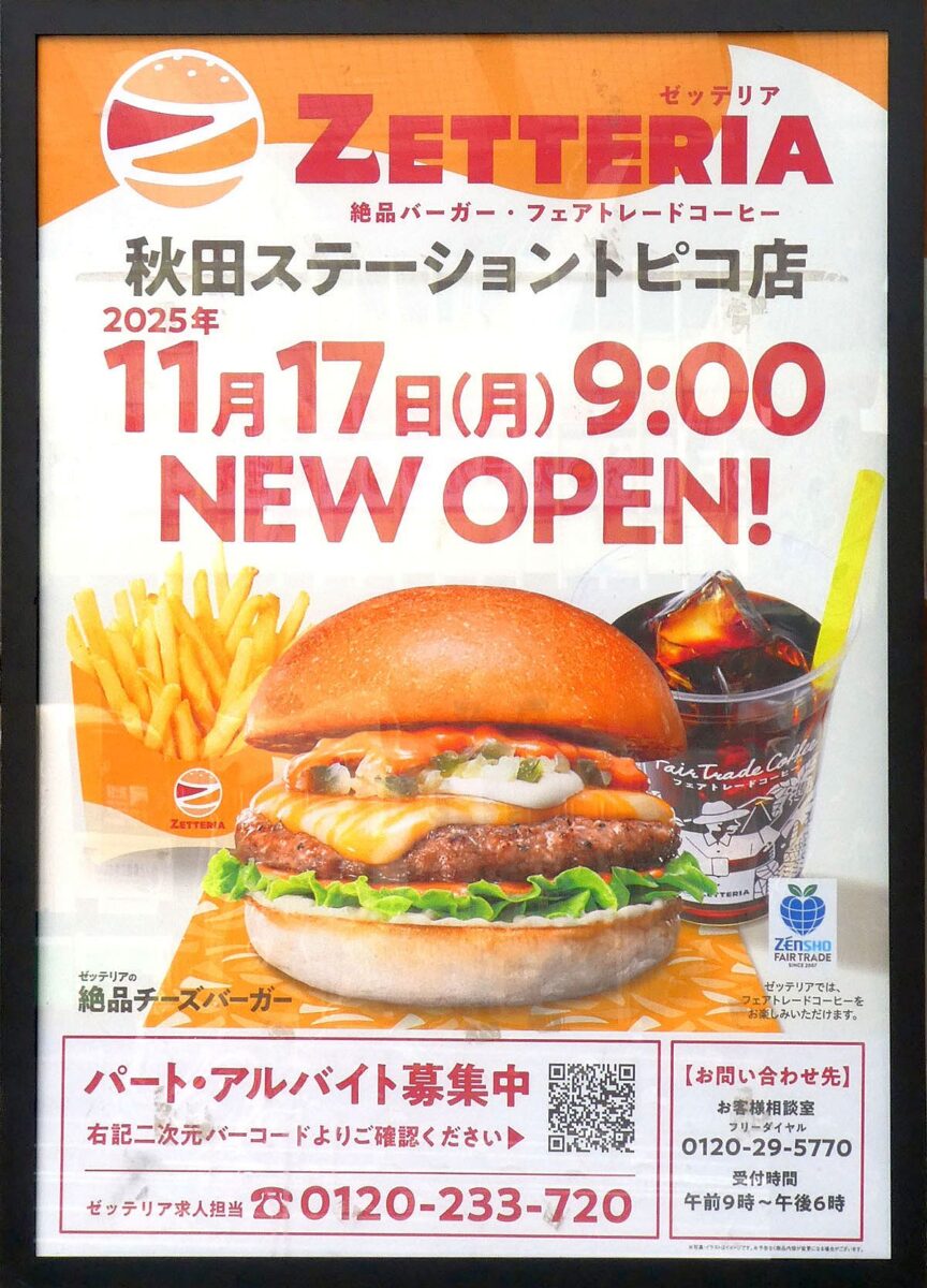 ・11/17ゼッテリア 秋田ステーショントピコ店