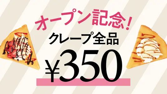 オープンを記念して、11月19日(水)から11月21日(金)までの3日間、クレープ全品を350円(税込)で提供する特別セールを開催