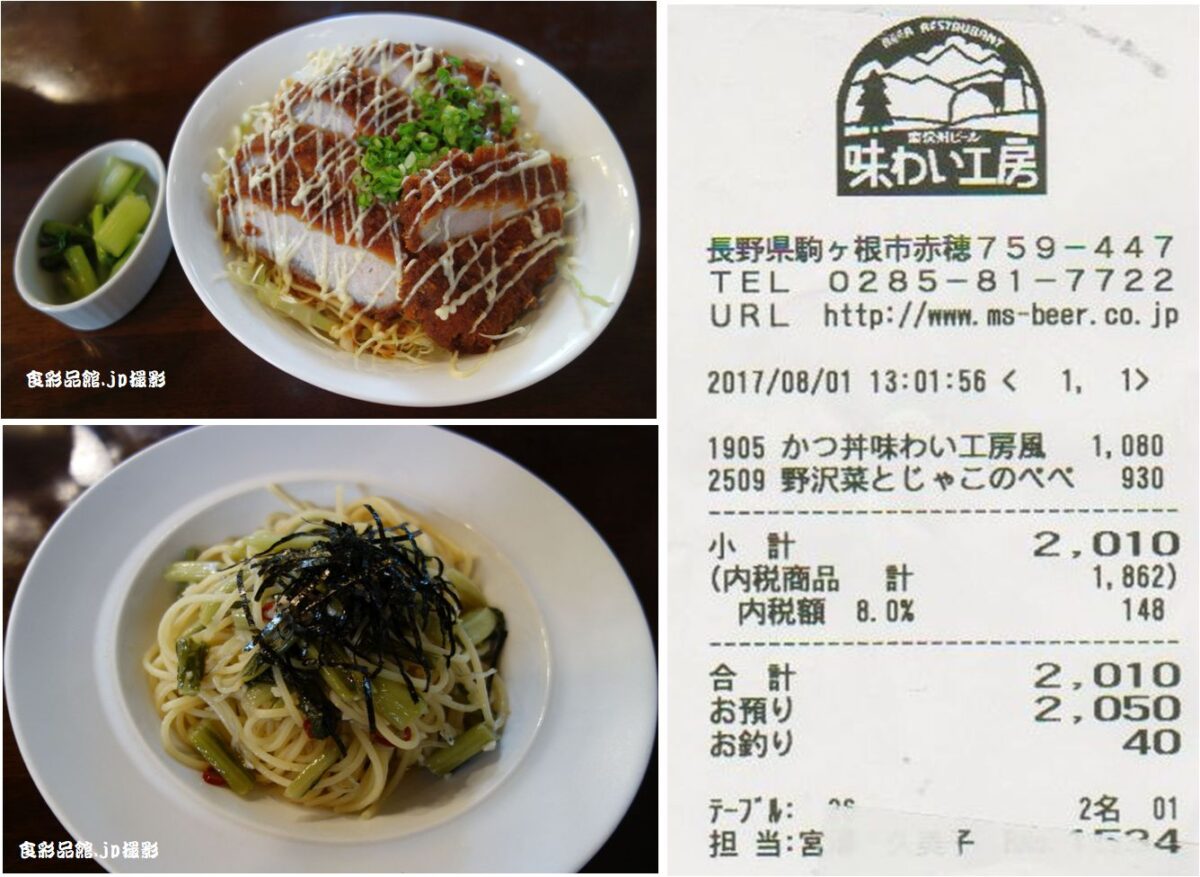 ・2017/08/26南信州ビール直営「味わい工房」(長野県駒ヶ根市)駒ヶ根ソースカツ丼味わい工房風と野沢菜と生パスタ使用じゃこのペペロンチーノ