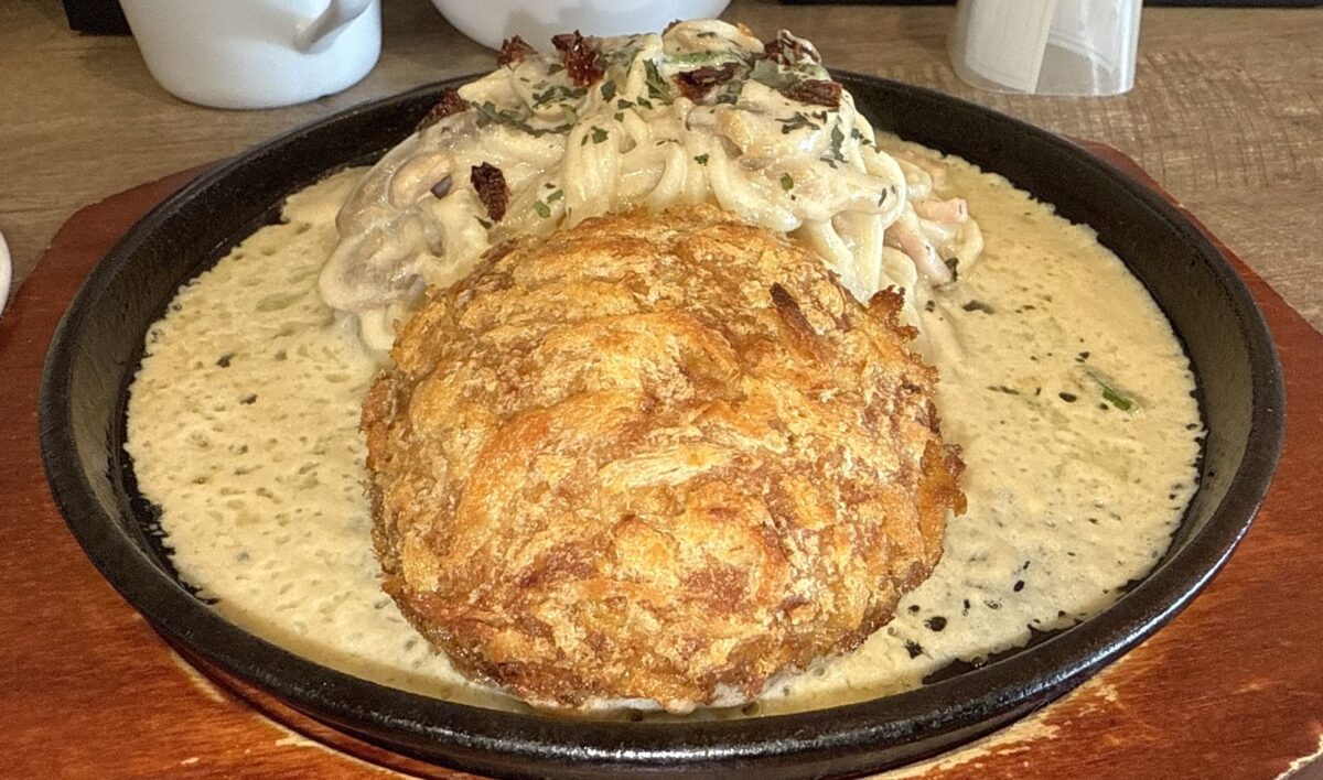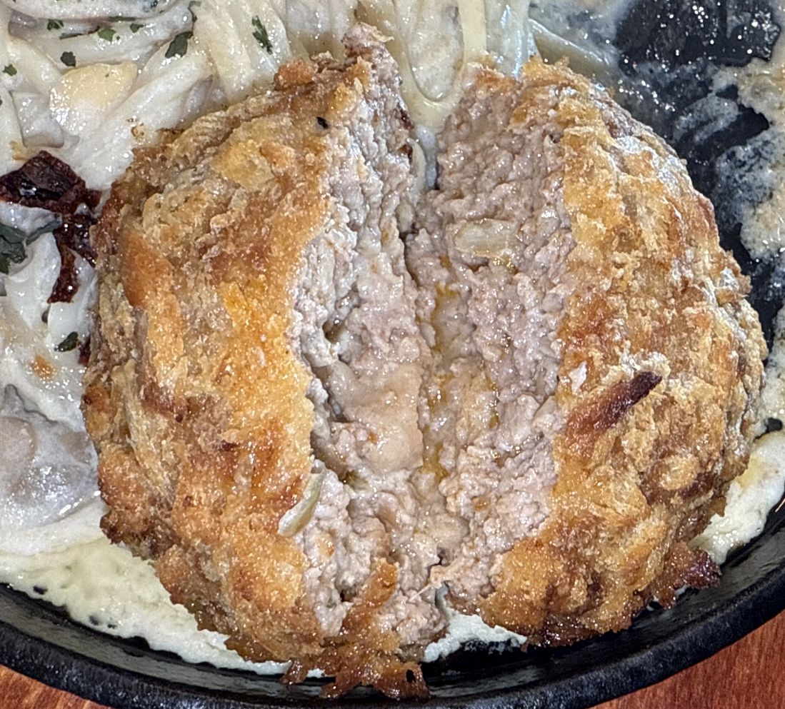 ・HAMBURG MEISTERオカモト(愛知県安城市)ポルチーニクリームのハンバーグスパゲッティを食す。スチームコンベクションで調理したハンバーグの安心感。