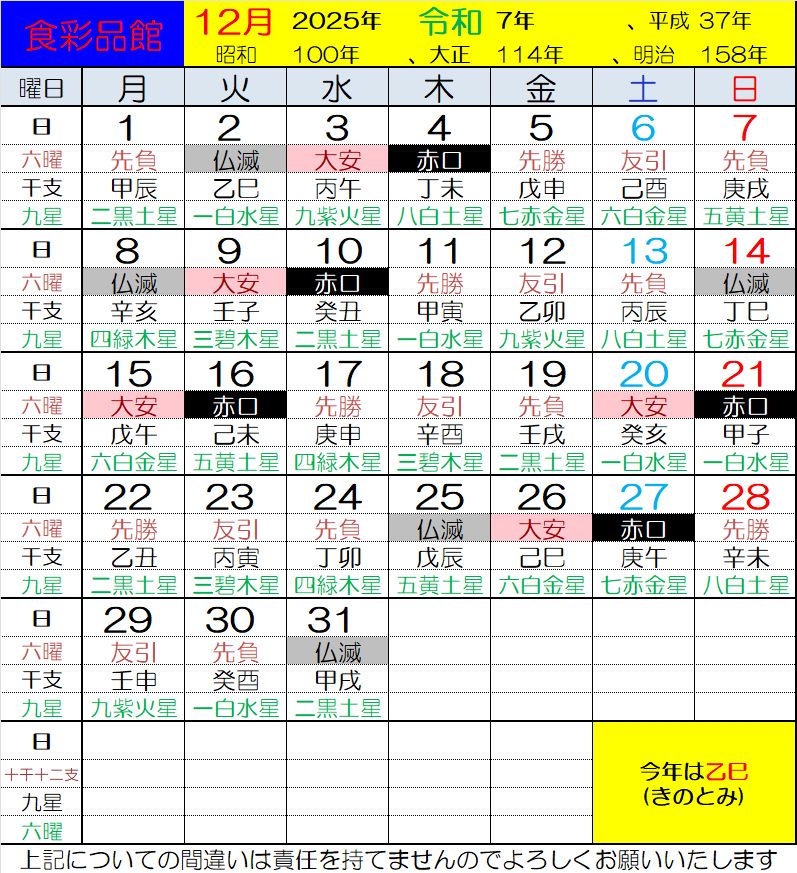 弁財天の縁日で吉日。巳(蛇)は弁財天の使いとされ、半運上昇に期待。財布新調,宝くじ購入に吉。12日1回周期。