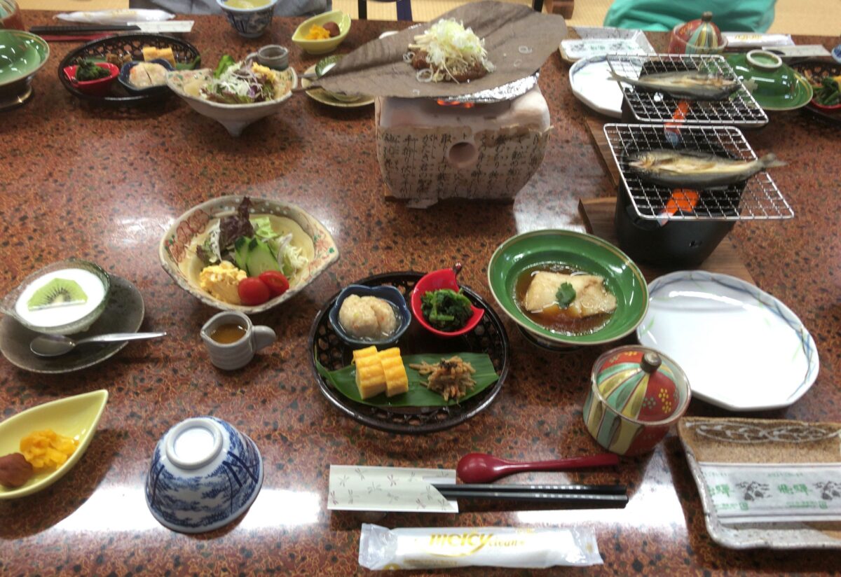 ・2018/10/18湯元館の夕食と朝食。岩魚(イワナ)の骨酒,飛騨牛,朴葉味噌,鮎の一夜干し。濁河温泉滞在記【その2】