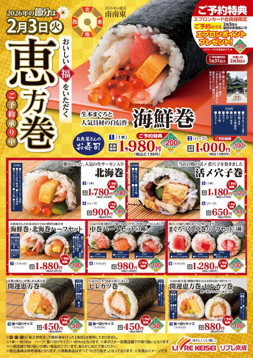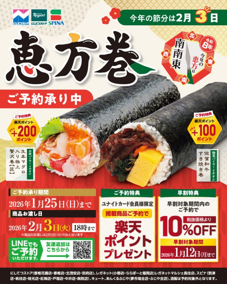 ・西友,近商ストア,にしてつストア,リブレ京成,ローソンスリーエフチルド恵方巻