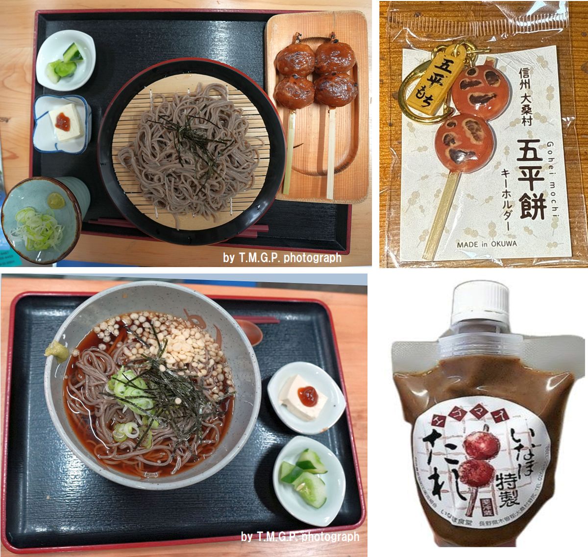 ・阿寺農産物加工販売おらが村の味処「いなほ」(大桑村) 手打ち蕎麦,ざるセット,エゴマ五平餅,五平餅キーホルダー,