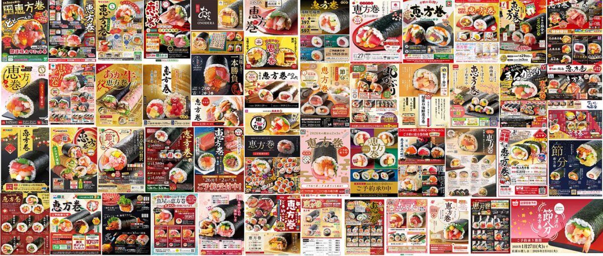 ・サミット,ファミリーマート銀座おのでら監修恵方巻,あおき(静岡),道北アークス,ベルジョイス,イオン琉球ザビッグ,オータニ,オギノ,新鮮市場きむら,杏林堂,さえき,ちこり村,さんとく,トライアル,ニチエー,フーデリー,ワイズマート,松坂屋上野店,松坂屋高槻店,三越銀座,