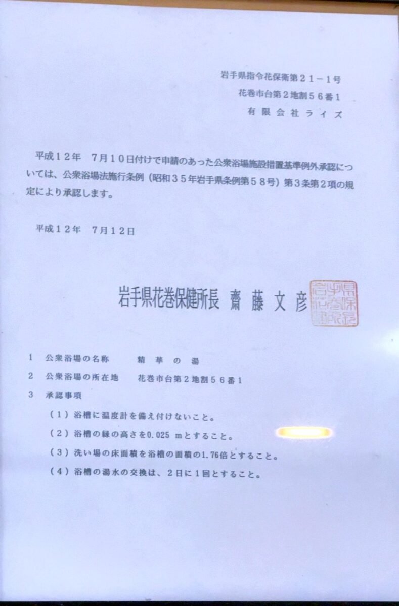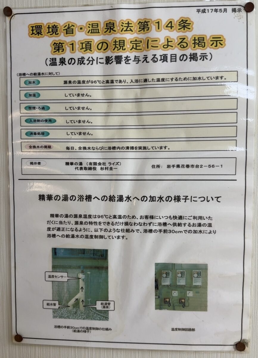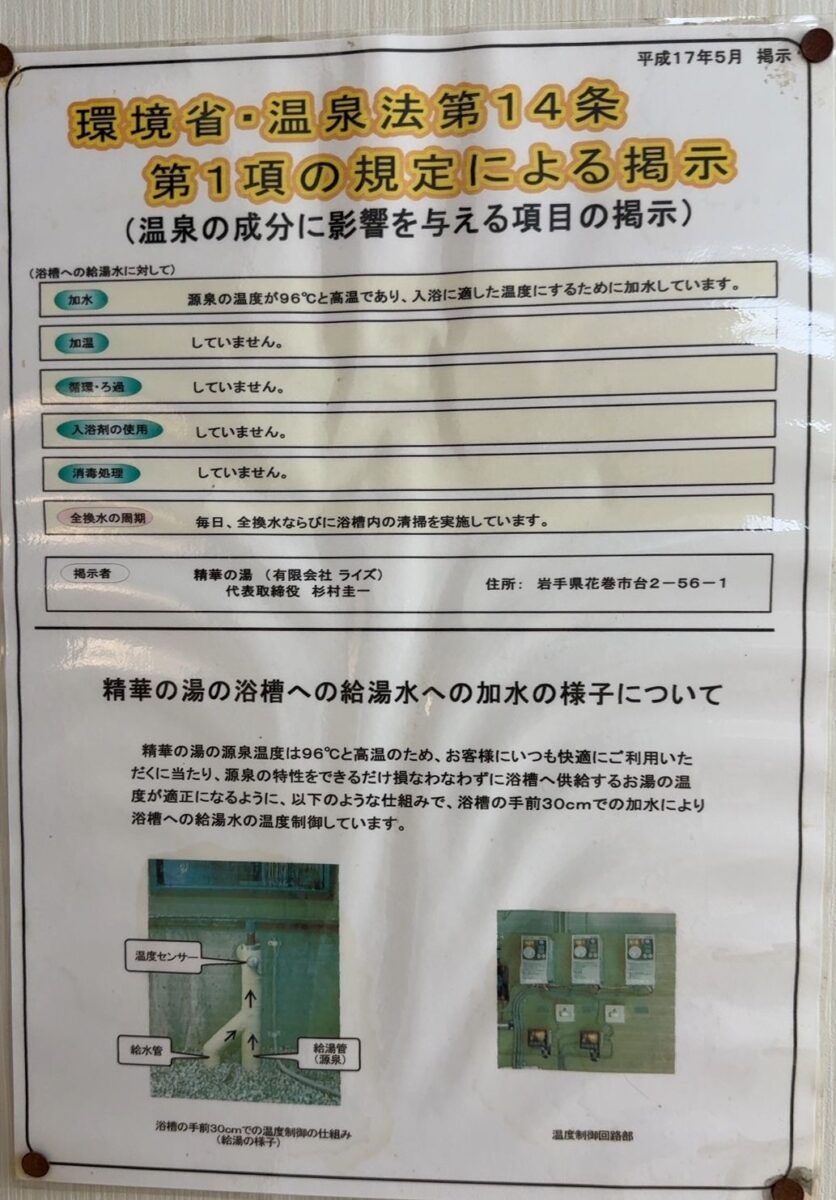 台温泉 精華の湯(岩手県花巻市)入浴 2024/10/17