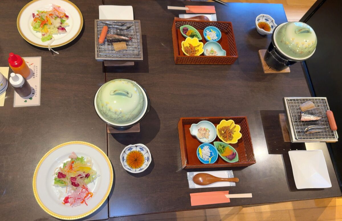 ・朝食ナイス。貴重な「甘露の湯」源泉の宿。浴槽混雑の見える化,源泉かけ流しの内湯とそうではない露天風呂。甘露の湯のお宿 湯処むろべ(和歌山県白浜町)