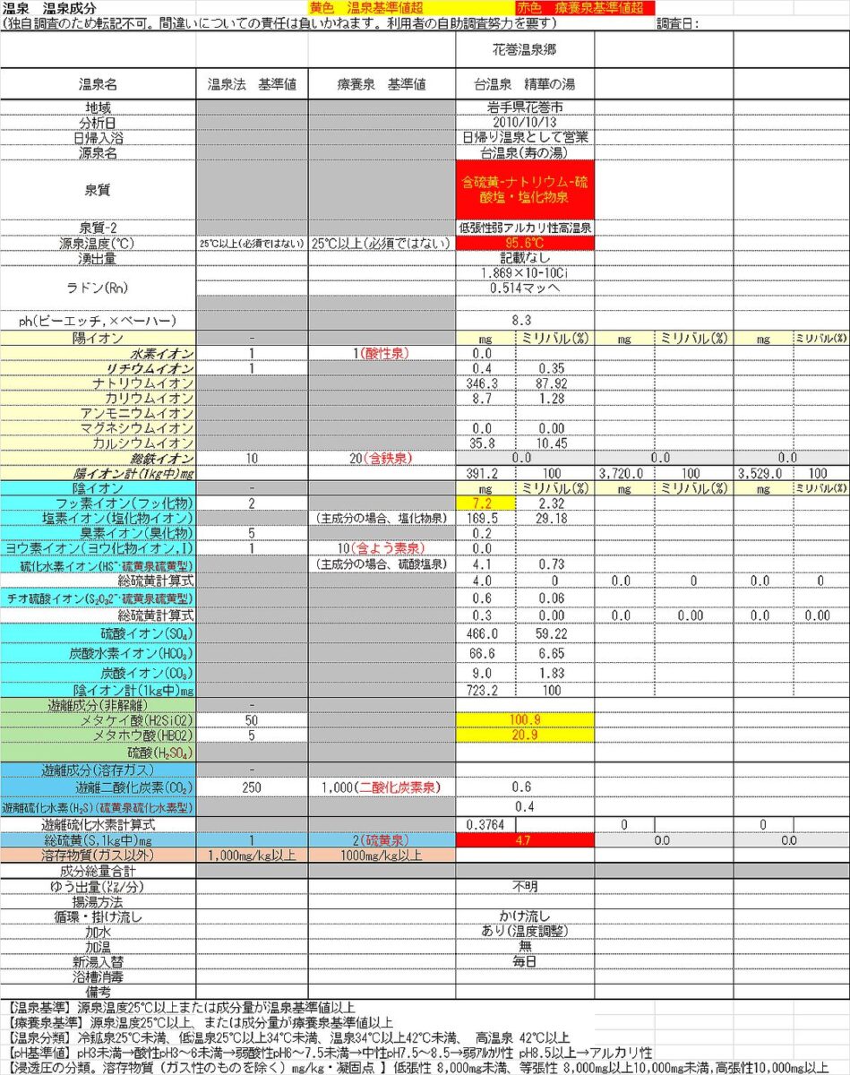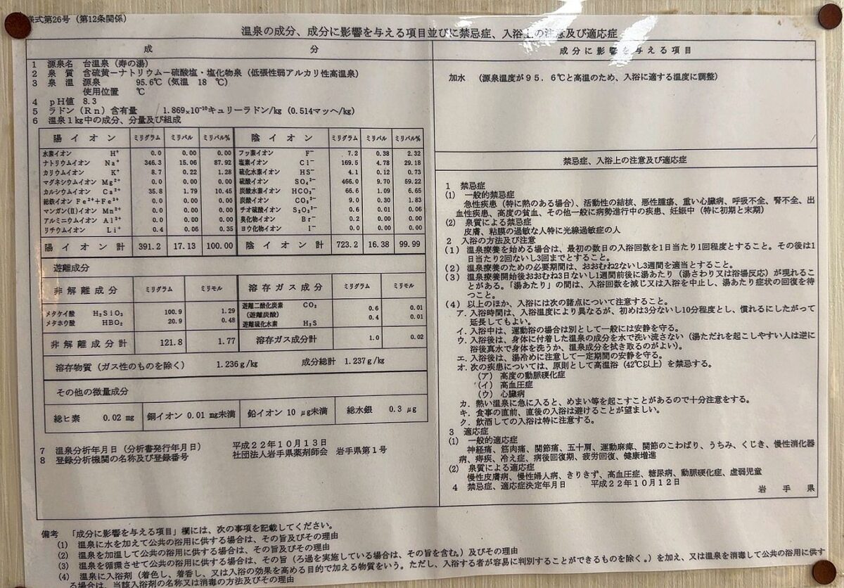 「お湯の鮮度感と総硫黄成分4.7mg」が特徴。花巻温泉郷,台温泉,精華の湯と手打ち蕎麦そば房かみや(岩手県花巻市)花巻12湯巡り,温泉分析書の最重要チェックポイント解説。総硫黄成分の簡易な計算式。温泉は「効能」ではなく「適応症(効果に期待)」。