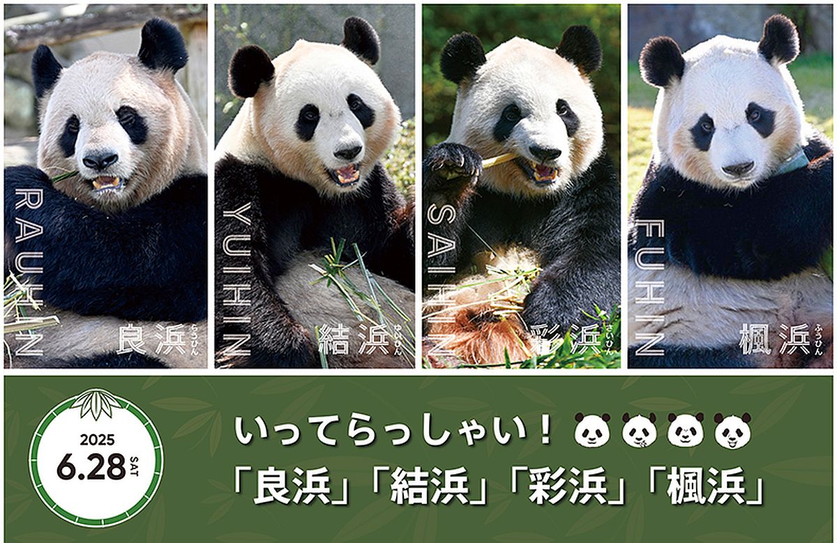 パンダの動画。和歌山県白浜アドベンチャーワールド,良浜,彩浜,結浜,楓浜の帰国1ケ月前。