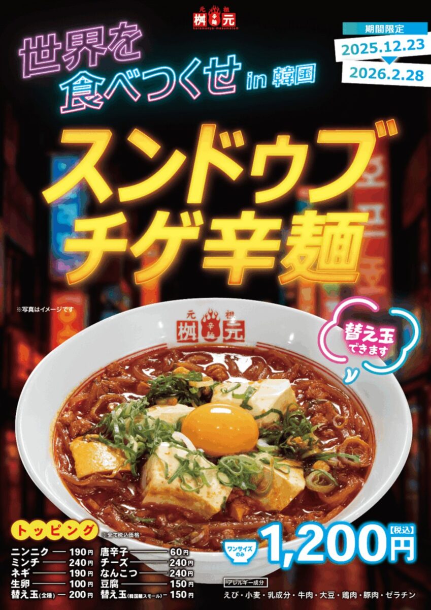 ・スンドゥブチゲ辛麺,β-エンドルフィン,辛みセンサーTRPV1,フランチャイズではなく直営で出店。今度はフルサイズの季節限定メニュー選択。