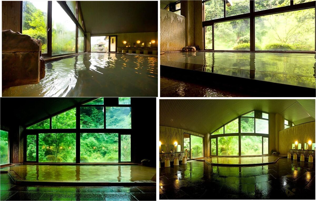 ・甘露の湯のお宿 湯処むろべ(和歌山県白浜町)貴重な「甘露の湯」源泉の宿。浴槽混雑の見える化,源泉かけ流しの内湯とそうではない露天風呂。