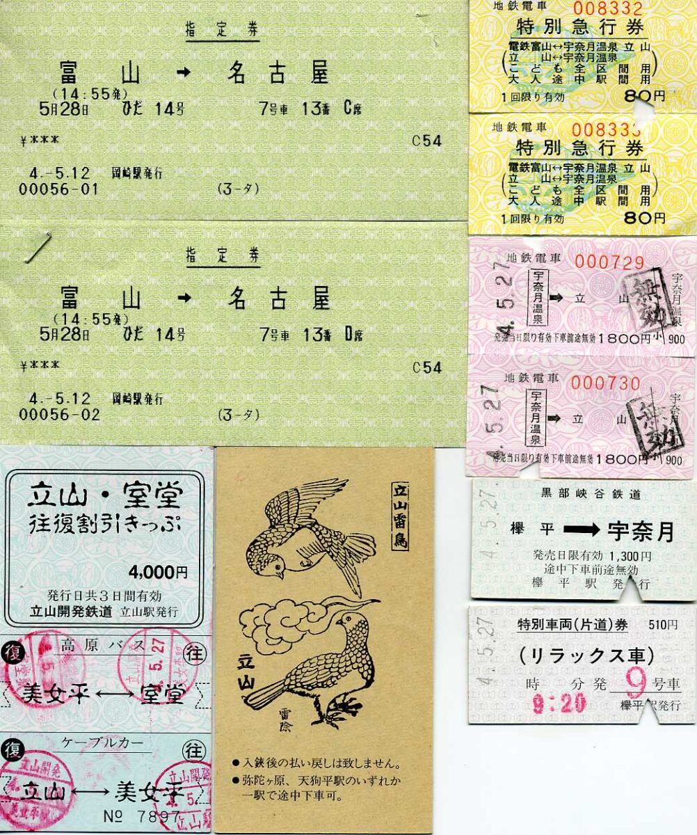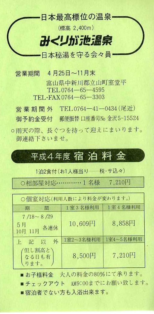 ↓ 1992年5月撮影(室堂平、みくりが池温泉、黒部峡谷鉄道、名剣温泉)