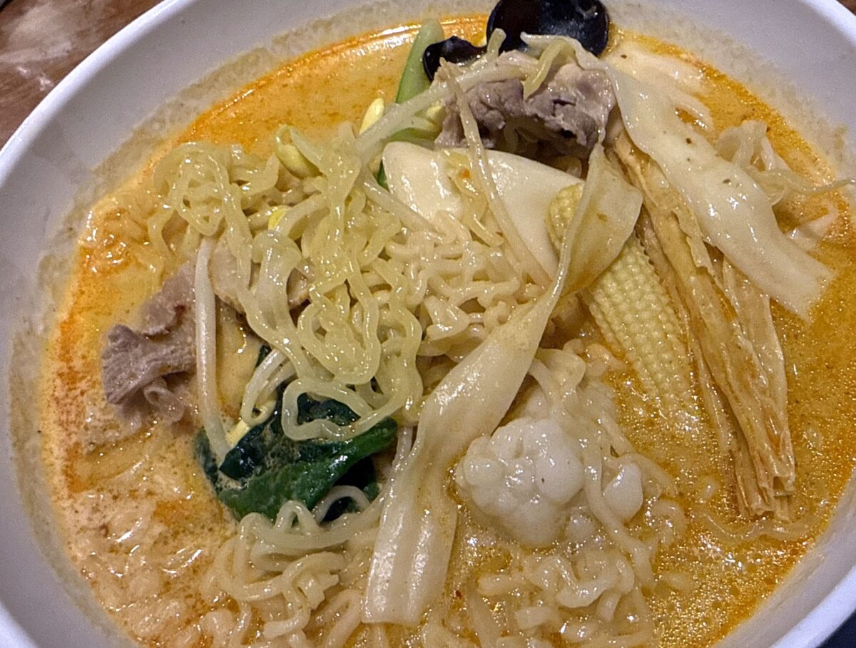 ・天使ノ麻辣湯(マーラータン,愛知県安城市)約40種の食材から選択して自分流の薬膳風カスタマイズ。ジャガイモ麺,タンミョン(唐麺),
