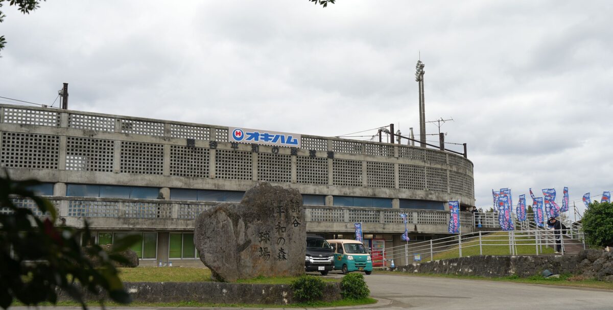 ・2年連続で沖縄読谷村でドラゴンスズキャンプ視察。金月そば読谷本店(きんちち)沖縄地粉そば1800円とそら豆味噌野菜そば980円実食。麦麦かなさん。オキハム読谷平和の森球場,ゆんた市場
