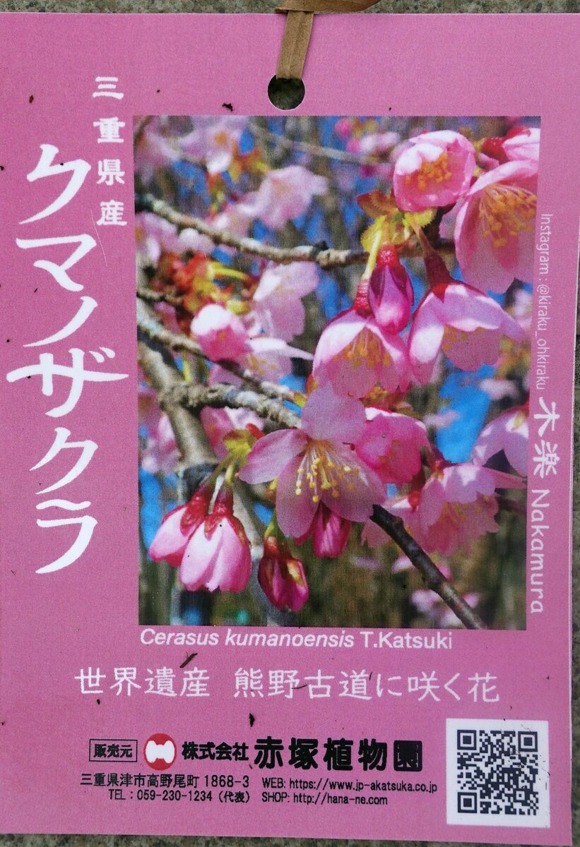 愛知県で実生2年苗から5年育成してようやくクマノザクラ開花。赤塚植物園アカツカFFCパビリオンで購入。100年ぶりの新品種,木楽Nakamura,長尾美春桜,