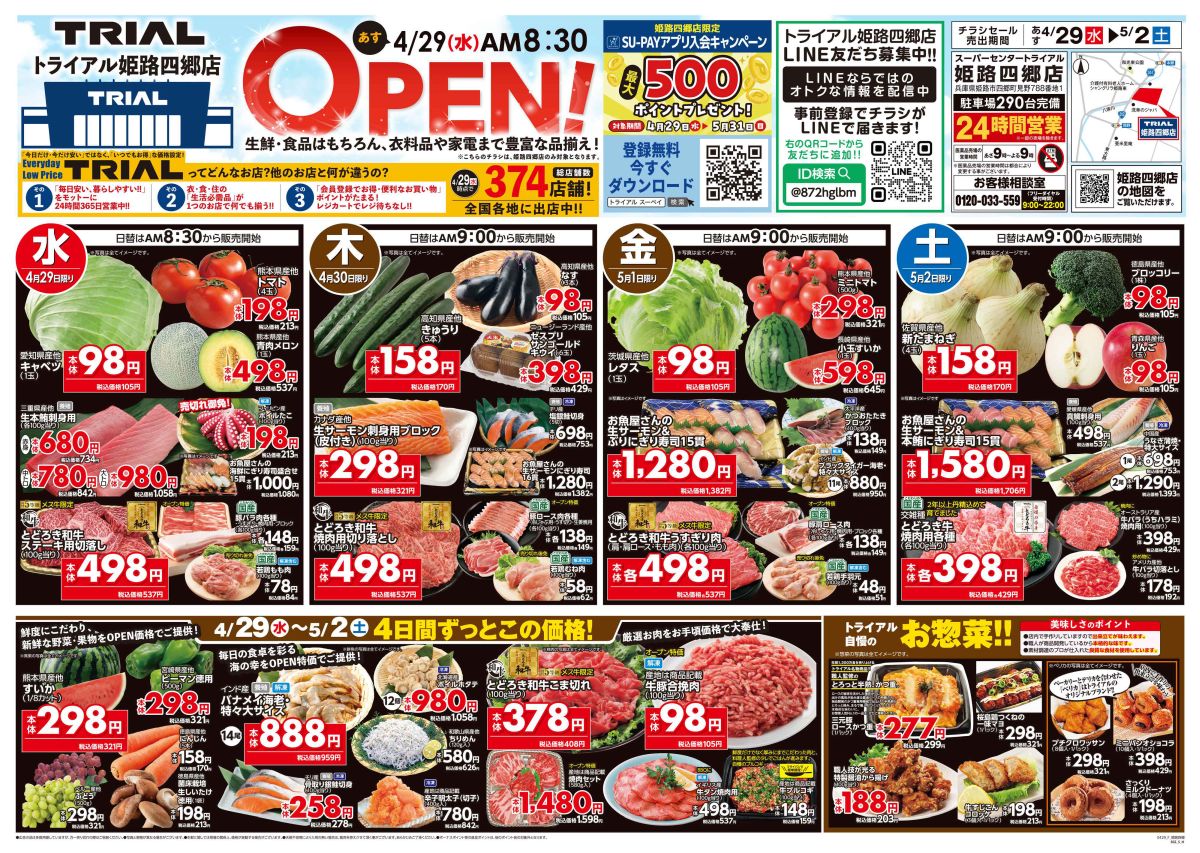 →スーパーセンタートライアル姫路四郷店,メガセンタートライアル浜北店,壱角家本厚木店,ナンバーズインmozoワンダーシティ,全日本うまいもの祭り」愛・地球博記念公園(モリコロパーク),京都洋食スター食堂總本店,EXPO 2027オフィシャルストアそごう横浜店,ワンハンドBENTObyほっかほっか亭,URBAN EARTH BBQ 本厚木ミロード店,鉄板ホルモン五の五町田店,トゥモローランド ルミネ新宿店・二子玉川店,セキスイハウスイズ宇都宮西展示場,LifeFit東十条駅前店・大津南郷店,本日は,旧暦3月13日,先負,癸酉,四緑木星,昭和の日,近江赤ハヤシの日,羊肉の日,ナポリタンの日,ふくの日,フォニックスの日,タオルの日,豊後高田昭和の町の日,歯肉ケアの日,歯肉炎予防デー,クレープの日,畳の日,キン肉マンの日,誕生花はフジ(藤),ミヤコグサ,クチナシ,コデマリ,長野県駒ヶ岳千畳敷2017年8月,