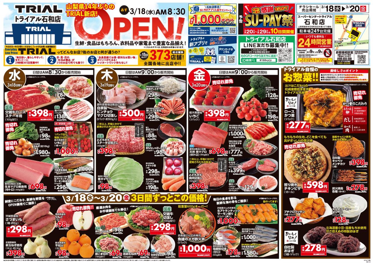 【オープンチラシ追記】2026年3月18日オープン→スーパーセンタートライアル石和店(仮称,山梨県笛吹市)2025年5月5日オープン予定で大規模小売店舗立地届出,