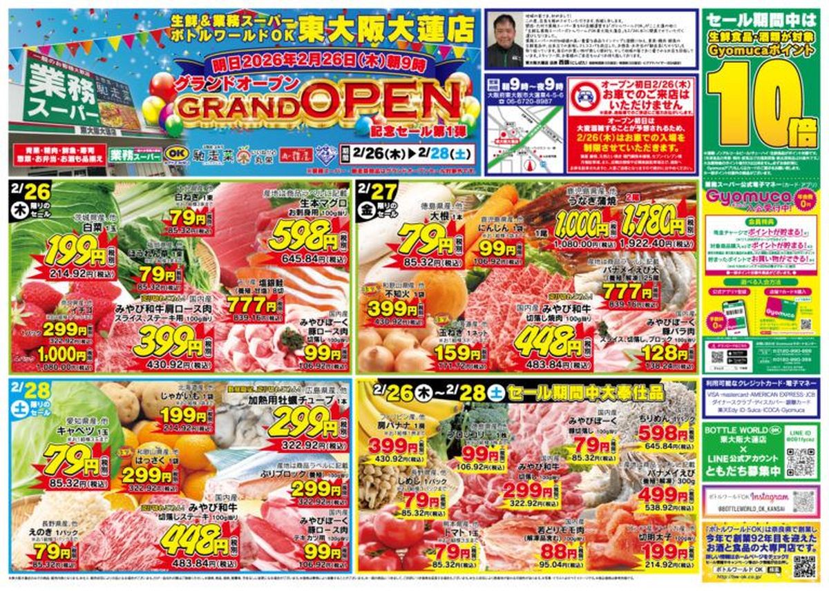 ・2/26生鮮&業務スーパーボトルワールドOK東大阪大蓮店(ボトルワールドOK名称)