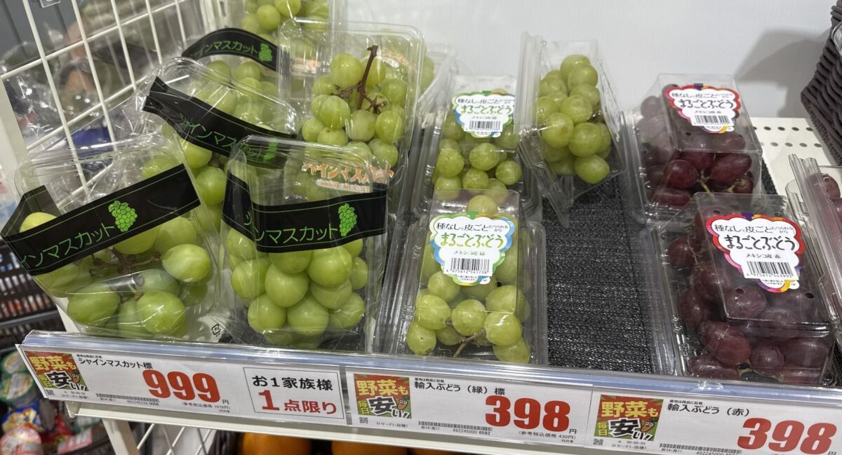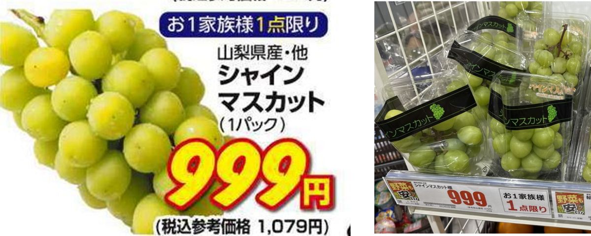 ・特売のシャインマスカットのチラシ写真を見て、期待していたが売場の現品がしょぼかったのが残念無念。この商品を目当てに行ったのに。(T△T)。