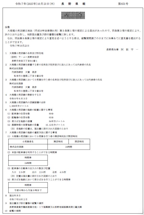 ・<6/3予定>ラ・ムー長野吉田店(西源,長野市)