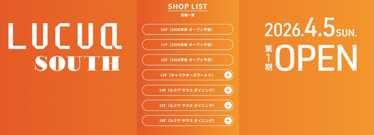 2026年4月5日(日)、JR大阪駅直結の「LUCUA SOUTH(ルクアサウス)」が第1期開業。