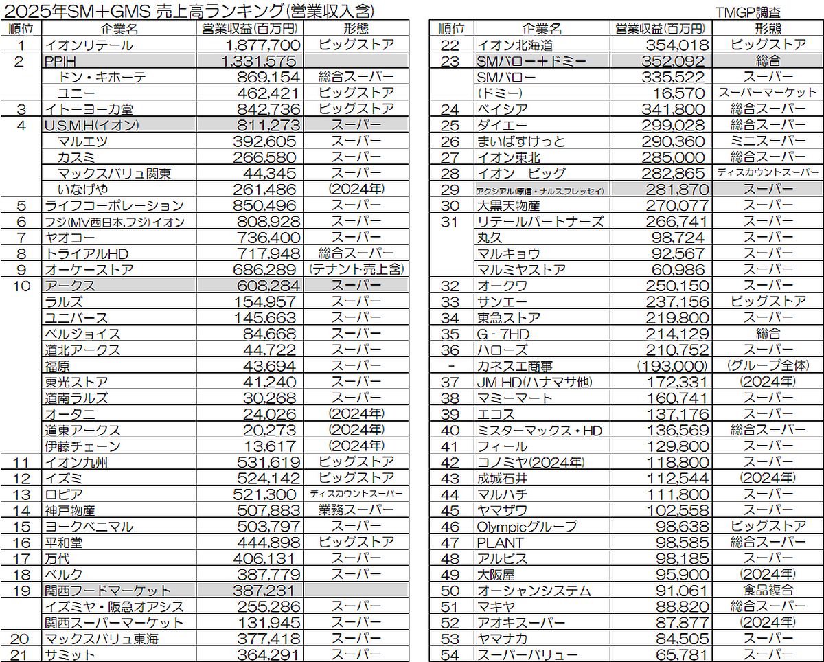 精肉、鮮魚、惣菜、青果、パン、日配食品、菓子、飲料、酒類、米、加工食品、 洗剤、紙製品、化粧品、医薬品、日用雑貨、家庭用電気製品、台所用品、 文具、玩具、インテリア用品、収納用品、カー用品、スポーツ用品、 ホームウェア、服飾雑貨、靴、ペット用品、園芸・DIY用品、自転車、その他