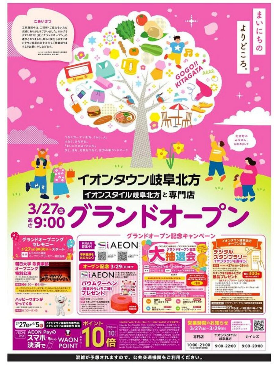 【グランドオープンチラシとイベント案内追記】イオンタウン岐阜北方,イオンスタイル岐阜北方(岐阜県本巣郡)2026年3月27日オープン,テナント約30店,地域最大のフローズン売場,3月24日ソフトオープン済