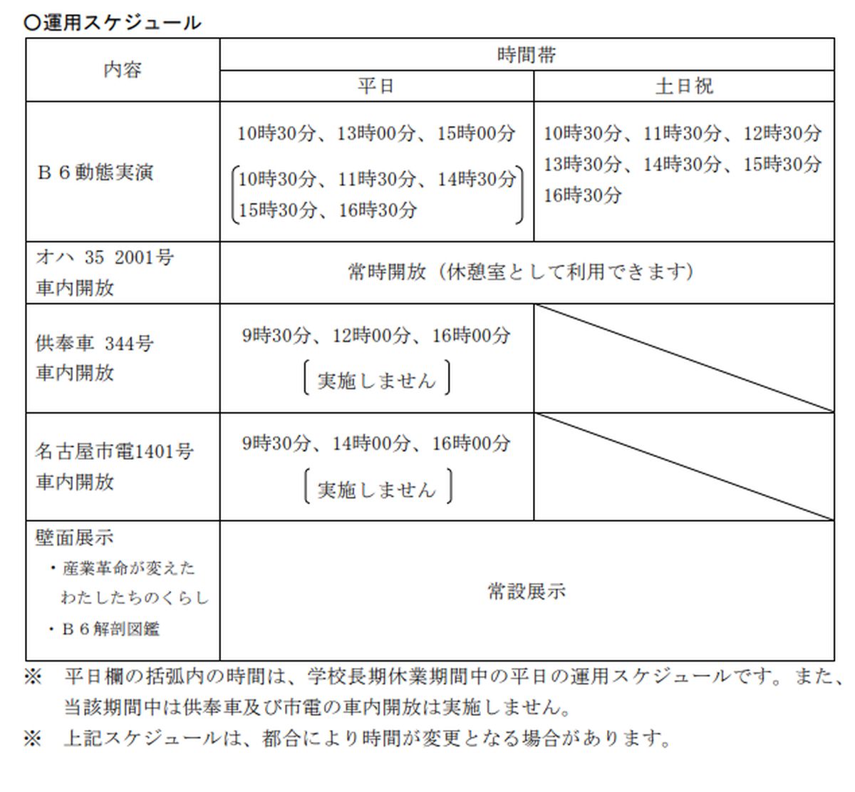 ◇運用スケジュール
